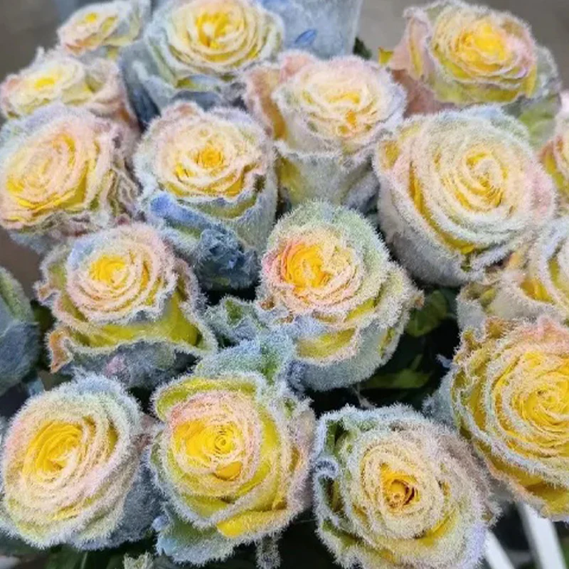 Unforgettable Gift: A unique gift for any gardening enthusiast or loved one. The striking frosted look and rainbow colors make these roses an unforgettable present.